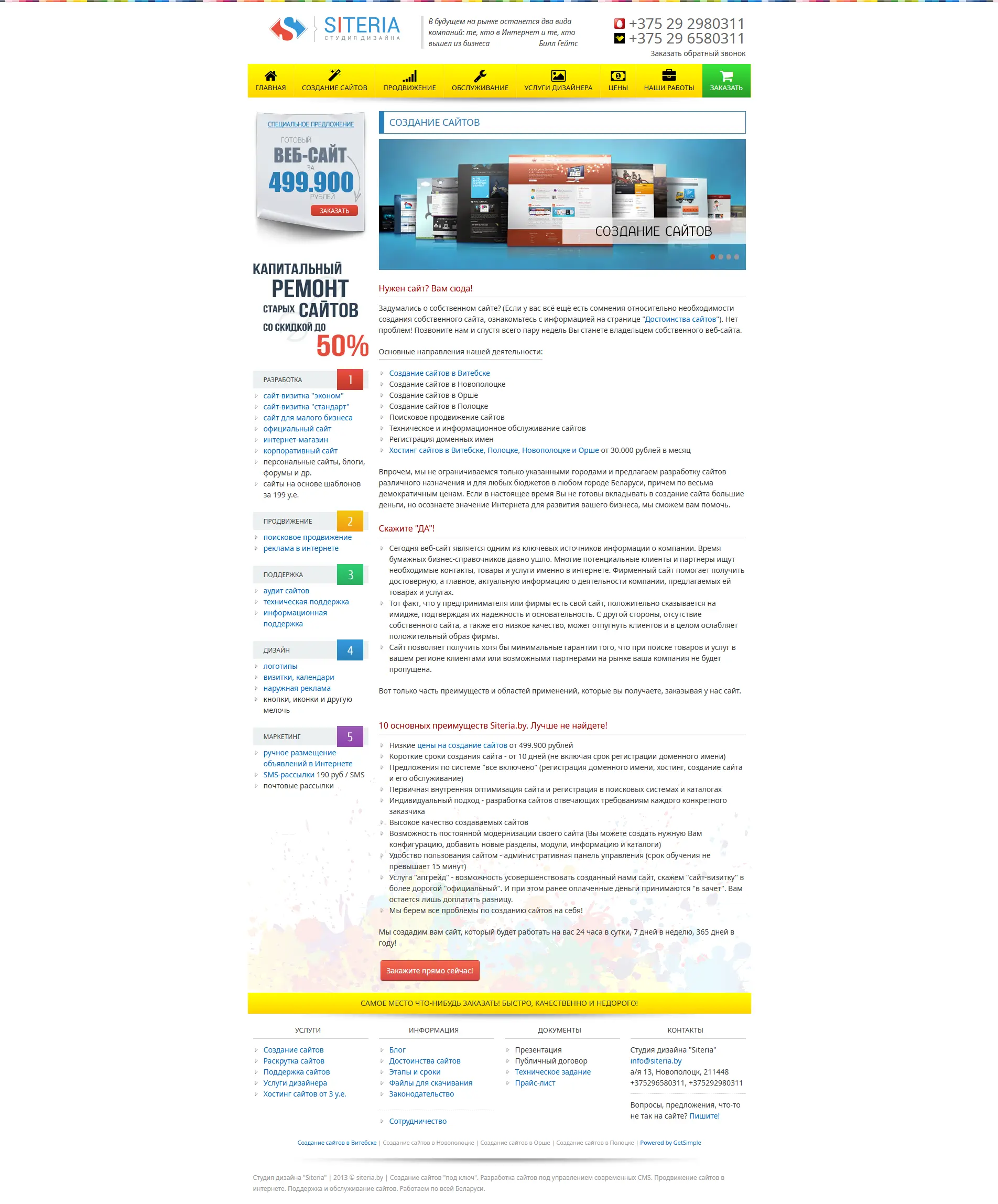 Дизайн сайта Siteria.BY 2011-2016 гг