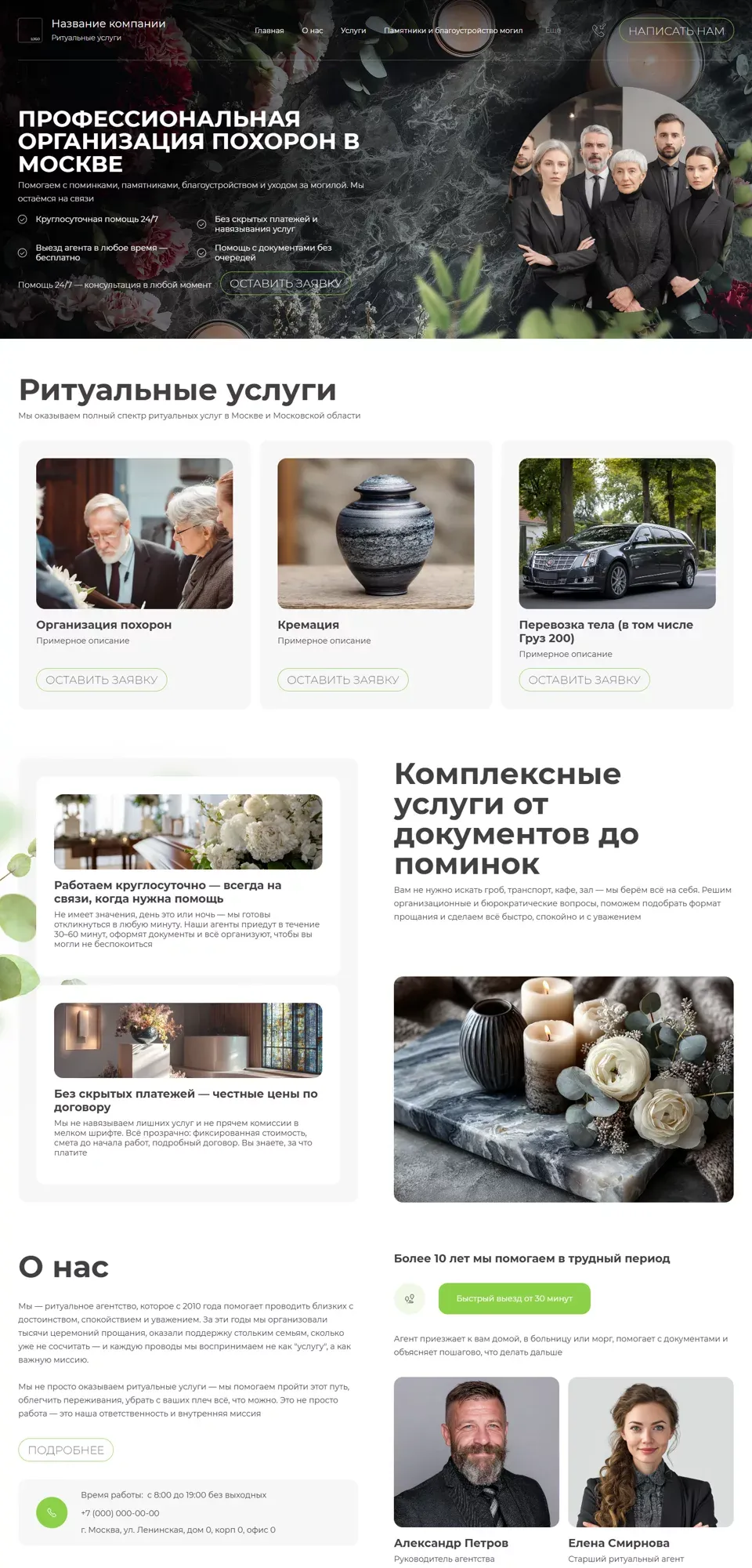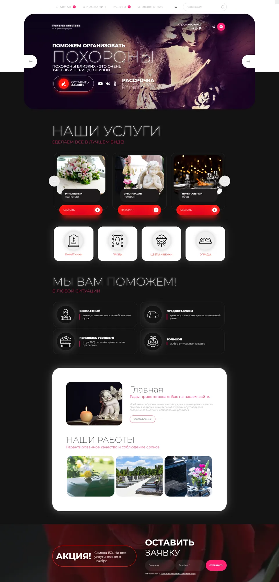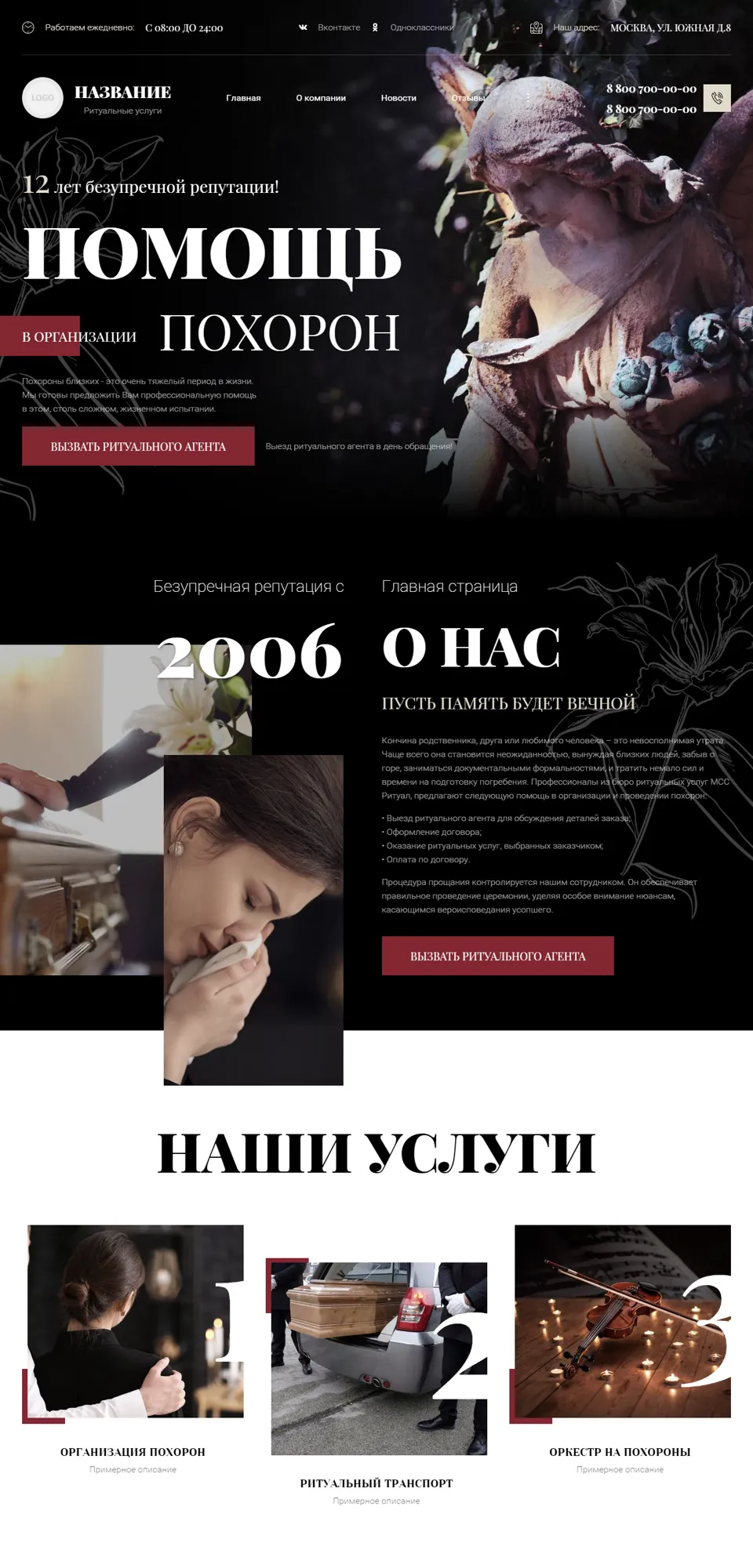 Варианты дизайна сайта по ОРГАНИЗАЦИИ ПОХОРОН