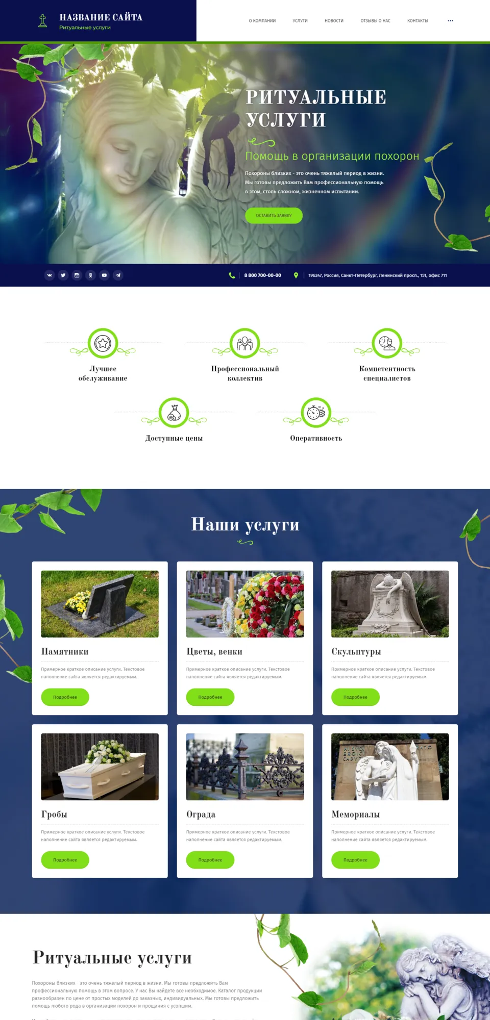 Я создаю профессиональные сайты для похоронных бюро, ритуальных служб и организаций, оказывающих весь спектр ритуальных услуг.