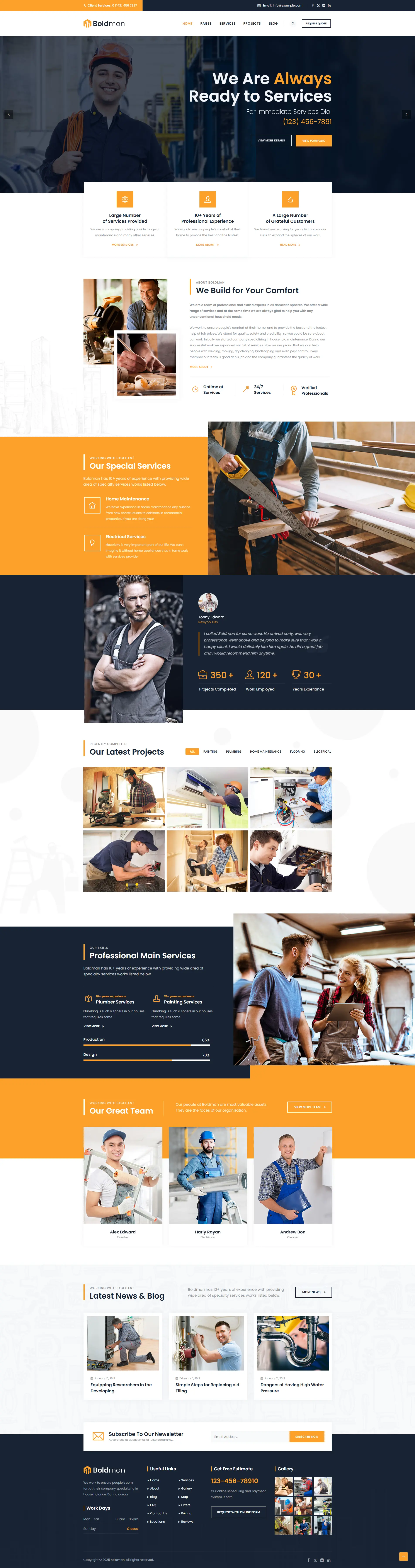 Boldman - шаблон WordPress для услуг сантехника, ремонта и строительства