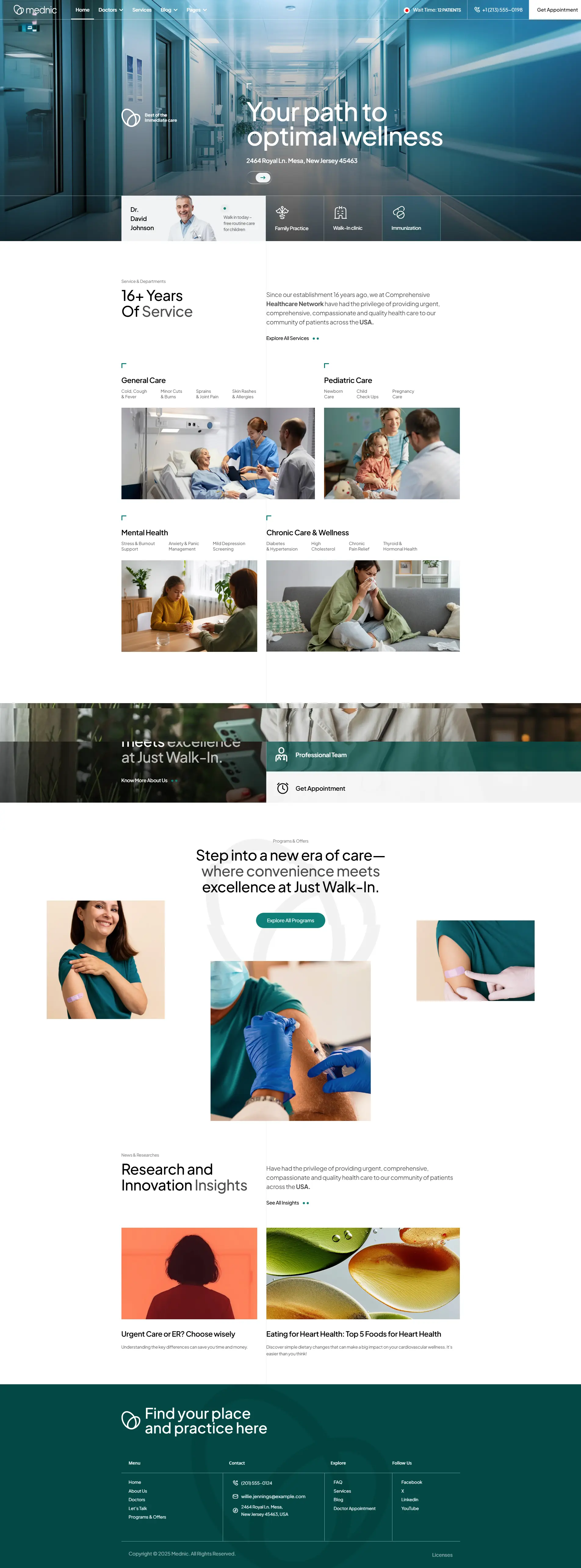 Mednic - это универсальный Joomla шаблон с современным медицинским дизайном, предназначенный для клиник, больниц, частных врачей и других медицинских организаций. Благодаря адаптивной верстке, интеграции динамического контента и большому выбору готовых страниц, Mednic идеально подойдет для создания профессионального медицинского сайта. Шаблон включает демонстрацию специалистов, услуг, отзывов, расписания, онлайн-запись и стильные визуальные эффекты. Управление контентом и настройка сайта осуществляются через интуитивно понятный визуальный редактор, что избавляет от необходимости вникать в программирование.